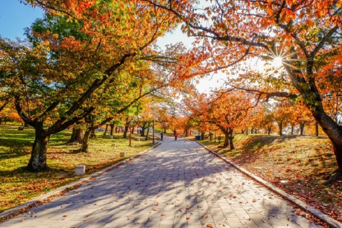 Tự hào với vô số cây đủ màu sắc từ lá vàng, đỏ đến hồng phủ kín các tầng, Vườn quốc gia Naejangsang là một trong những địa điểm nổi tiếng và mang tính biểu tượng để tận hưởng vẻ đẹp mùa thu ở Hàn Quốc. Những con đường được bao bọc bởi lá đỏ và vàng ở hai bên mang đến tầm nhìn tuyệt đẹp chiêm ngưỡng kỳ quan của mẹ thiên nhiên.