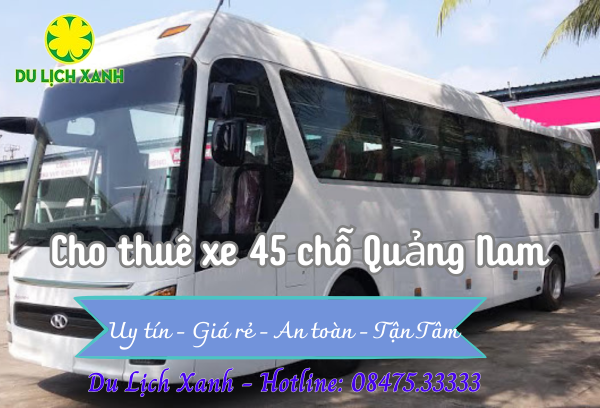 Bảng giá thuê xe 45 chỗ Quảng Nam của Công ty DuLichXanh cho thuê xe 45 chỗ Du Lịch Xanh được cập nhật mới nhất với hơn 3 dòng xe ô tô du lịch 45 chỗ với các đầu xe đời xe mới từ 2019 trở lên và đội ngũ điều hành, tài xế xe 45 chỗ có trên 10 năm kinh nghiệm trong lĩnh vực cho thuê xe tại Quảng Nam luôn sẵn sàng phục vụ và tư vấn tận tình cho quý khách hàng