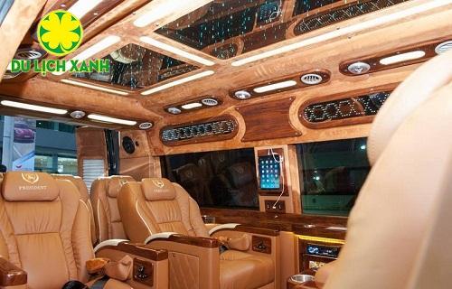 Tiếp theo, không thể kể đến tiện ích đẳng cấp 5 sao trên mỗi chiếc xe Limousine Nhà xe Du Lịch Xanh. Xe được trang bị dàn loa chất lượng, hệ thống wifi mạnh mẽ, sạc pin điện thoại trên xe,…giúp bạn trải nghiệm được những tiện ích hàng đầu của cuộc sống hiện đại. Và cuối cùng, không gian bên trong xe cực kỳ rộng rãi, ghế xe được trang bị 9 ghế, 16 ghế hoặc 19 ghế phù hợp với nhóm du lịch đông người cùng bạn bè, đồng nghiệp, gia đình,…. Nhà xe Du Lịch Xanh, cho thuê xe Limousine Thái Nguyên, cho thuê xe Limo Thái Nguyên, cho thuê xe Limousine tại Thái Nguyên