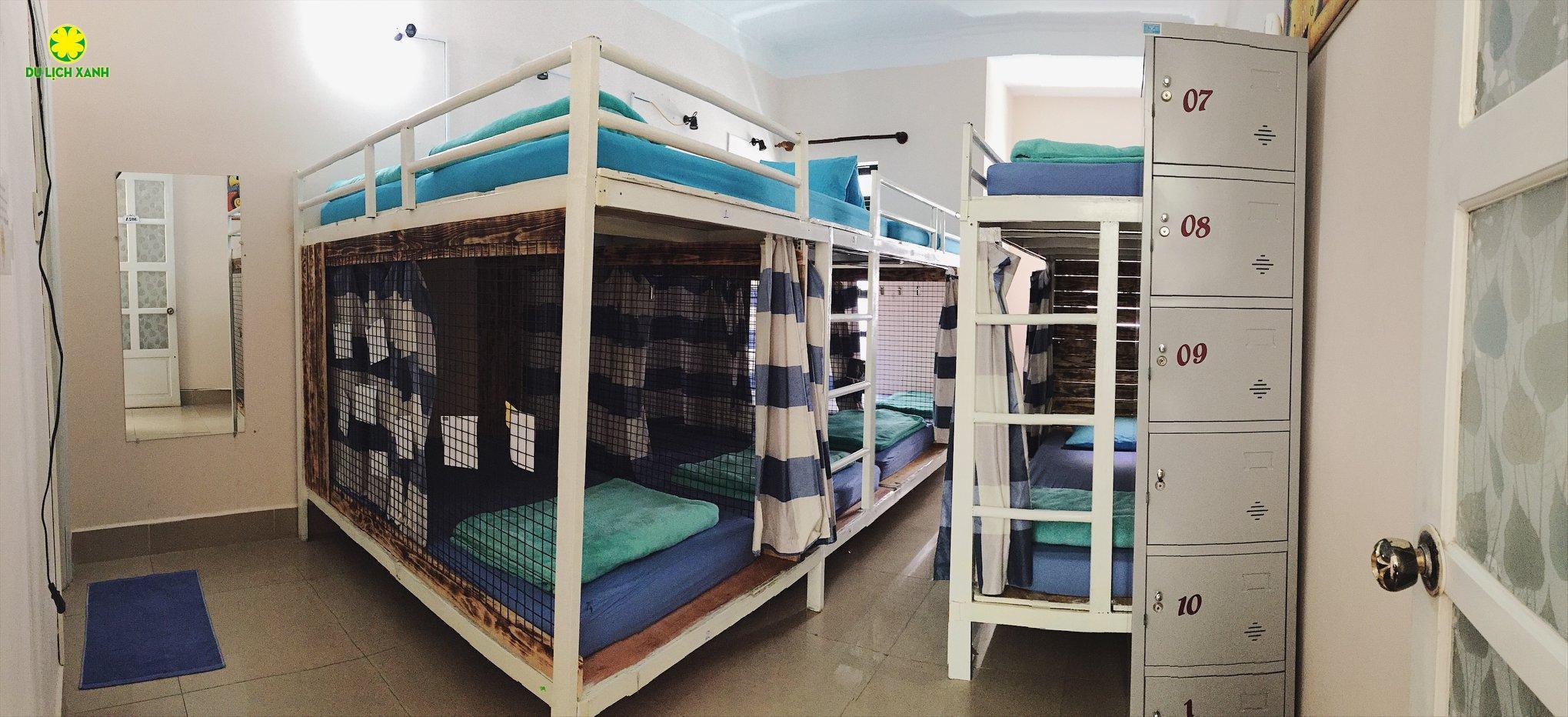 Phòng gồm 2 chiếc giường tầng dài có sức chứa lên đến 8 – 14 người phù hợp với nghỉ dưỡng đội nhóm. Phòng sử dụng gam màu xanh chủ đạo tạo cảm giác dịu mắt. Tại Dalat Lemongrass Homestay, mỗi phòng ngủ đều được trang bị wifi miễn phí, có phòng tắm riêng đầy đủ đồ dùng.