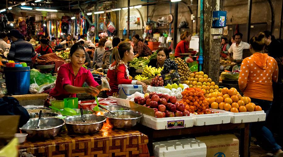 Về đến Phnompenh, đoàn tham quan và mua sắm tại Chợ lớn mới Phsar Thmey