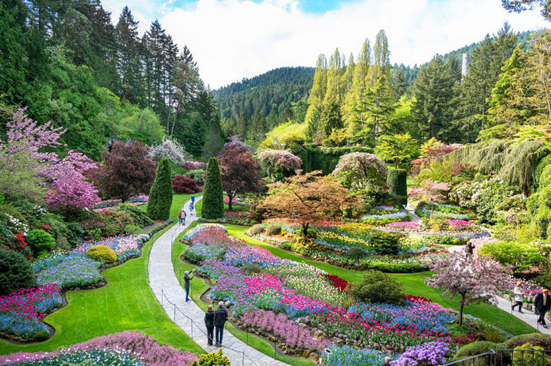 - Vườn Butchart với những đoá hoa hồng đỏ thắm, hoa Anh túc Tây Tạng vàng rực, những bông tulip đủ sắc màu, hồng đào trắng muốt xen lẫn nhau…một khung cảnh thật lãng mạn với trăm loài hoa khoe sắc cùng hương thơm quyến rũ sẽ làm say lòng du khách, thưởng thức những chương trình biểu diễn tạp kỹ ngoài trời. Đây là điểm tham quan nổi tiếng nhất ở Victoria.