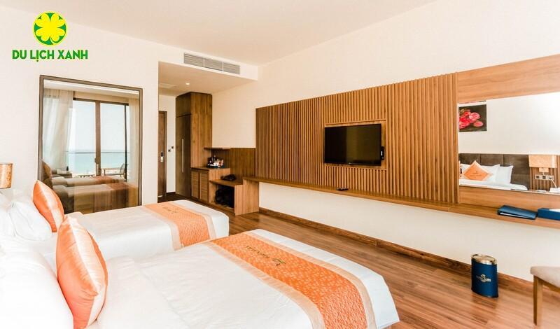 Phòng có diện tích 42m2, trang bị 1 giường đôi cỡ lớn hoặc 2 giường đôi. Các tiện ích trong phòng bao gồm phòng tắm, minibar, tủ quần áo, TV cùng rất nhiều tiện ích hiện đại khác. Phòng có trang bị thêm ban công rộng và thoáng mát, tầm nhìn hướng ra biển Tuy Hoà, rất thích hợp cho du khách ngắm cảnh, thư giãn. Nội thất trong phòng được thiết kế tỉ mỉ và hiện đại với tone màu trắng và be tinh tế. Không gian hoàn hảo này là sự lựa chọn hợp lí cho nhóm bạn ít người hoặc các cặp đôi tới nghỉ dưỡng.
