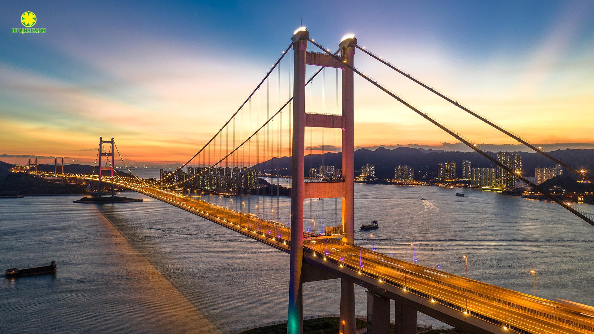 Xe và hướng dẫn viên đón đoàn tại sân bay đưa về trung tâm thành phố. Trên đường đi, đoàn tham quan kiến trúc của cầu treo Thanh Mã (Tsing Ma Bridge) - cây cầu treo có nhịp cầu lớn thứ 7 trên thế giới.