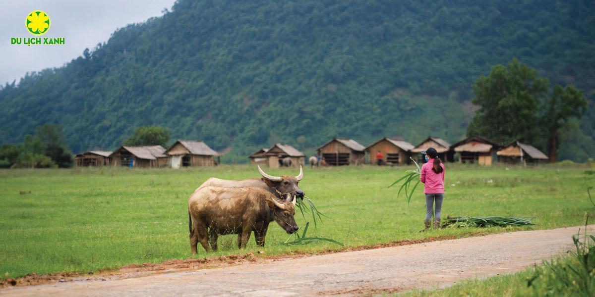 15h00: Đạp xe đi dạo tham quan làng quê bình yên được bao bọc bởi những dãy núi đá vôi cao sừng sững và sông Rào Nan thơ mộng. Đến thung lũng Tú Làn ngập tràn cỏ xanh lưu lại những bức hình ảo diệu. Trải nghiệm cuộc sống sinh hoạt thường nhật của người dân miền sơn cước Quảng Bình.