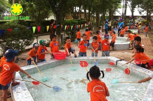 - Khám phá khu trò chơi dân gian với các trò chơi truyền thống mà các bạn chưa từng như: Ném còn, xích đu trên không, bập bênh, vượt cầu khỉ.. Bên cạnh đó, học sinh tham quan “Ngôi nhà nhỏ của làng quê Việt Nam” – Nơi trưng bày nông, ngư cụ… những dụng cụ hỗ trợ các bác nông dân trong việc sản suất nông, ngư nghiệp.