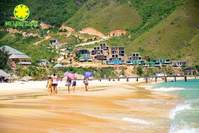 08h30: Đến nơi, Quý khách hòa mình vào thiên nhiên, một bên là biển nước màu xanh lam trong vắt, một bên là núi đá cao sừng sững. Khám phá bãi cát dài mịn, khung cảnh hoang sơ đầy quyến rũ, đặc biệt được chấm phá bằng những công trình đặc sắc như: Cầu Yến, Cầu Trái Tim, Kỳ Co Resort,… và những hang đá, suối nước đẹp đến bất ngờ.