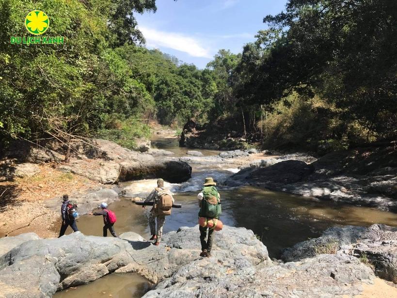 - 13:30-16:00: Tiếp tục đi dọc bờ suối để chuẩn bị cho bữa tối. Thời gian dự kiếm quay về điểm hạ trại là 17:00-17:30.