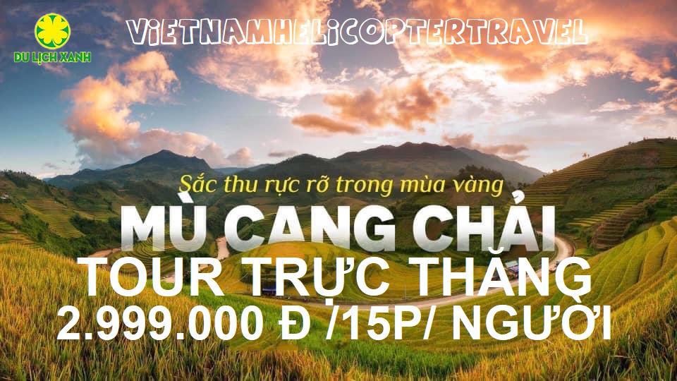 Tour trực thăng Mù Cang Chải khởi động bay 15 phút ngắm cảnh di sản ruộng bậc thang mùa lúa chín. Tour bay trực thăng Mù Cang Chải hiện đại, an toàn và được bán giá ưu Đãi. Đang bán tại Vietnam Helicopter Travel and Du Lịch Xanh