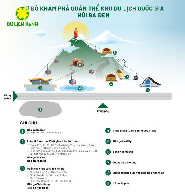 Những điểm nhấn kiến trúc này không chỉ là nơi dừng chân trên hành trình lên đỉnh núi Bà Đen, mà còn là các tác phẩm nghệ thuật đặc biệt, góp phần tạo nên sự độc đáo và hấp dẫn của khu du lịch này.