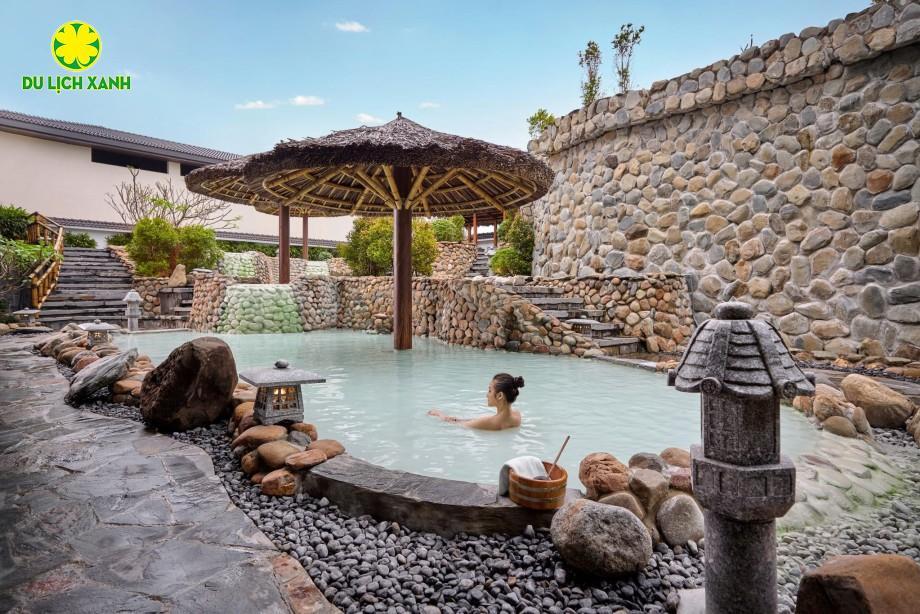 - Bể ngâm onsen ngoài trời: Với bể ngâm onsen ngoài trời, du khách sẽ được trải nghiệm nguồn khoáng nóng tự nhiên. Đây sẽ là trải nghiệm giúp bạn hòa mình với thiên nhiên và thư giãn tốt nhất.
